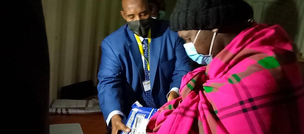 Education CAS Hassan Noor supervises distribution of KCPE2020 examination materials at a Garissa Town container