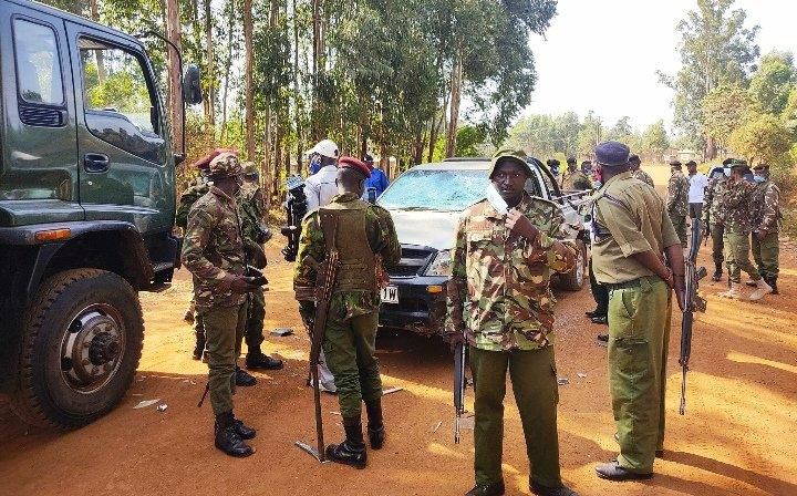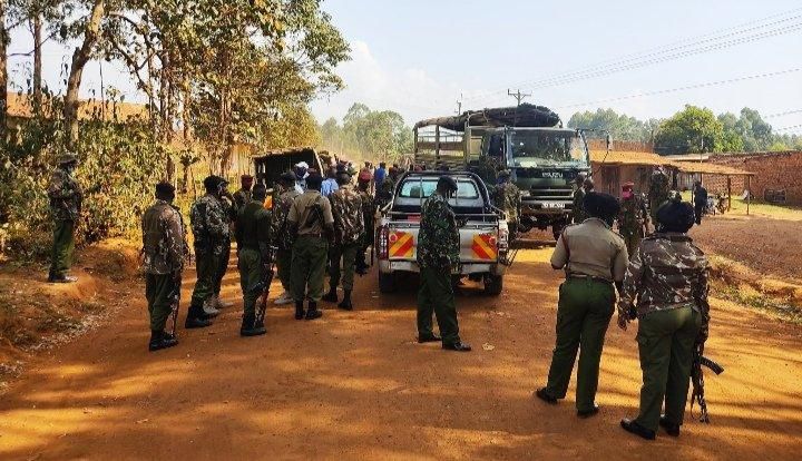 Police officers keeping guard during Kabuchai by-election