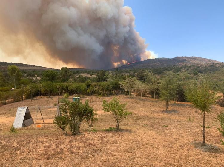 The fire seen as in the 8,000 acres of the Lolldaiga training area, near Nanyuki Image: TWITTER