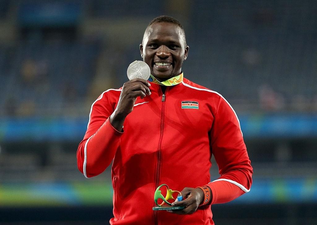RIO DE JANEIRO, BRAZIL - AUGUST 20: Julius Yego of Kenya stands on the podium during the medal ceremony for the Men's Javelin Throw on Day 15 of the Rio 2016 Olympic Games at the Olympic Stadium on August 20, 2016 in Rio de Janeiro, Brazil. (Photo by Patrick Smith/Getty Images)