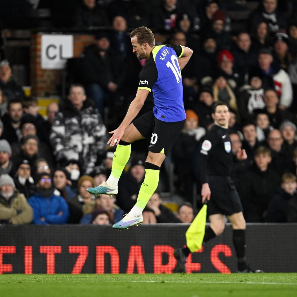 Harry Kane of Tottenham Hotspur celebrates after scoring against Fulham on January 23, 2023.